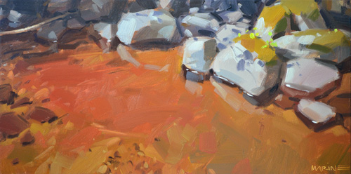 This is actually a scene from right here in Oregon, done from a photo I took last year at Sweet Creek. I find that a lot of the creek scenes lend themselves to a wide format. Landscapes in general do ... I guess that's why this is called the "landscape" format? Huh.