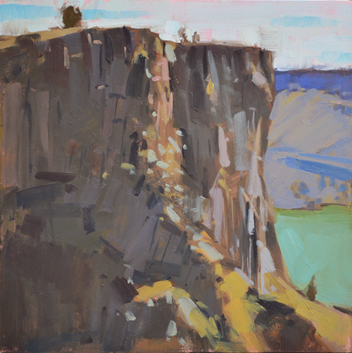 I ended up mostly painting over what I painted in the field. Again. I like it a lot better now. I would love to paint cliffs again. All the little bits in light and shadow are fun to interpret with paint. |
