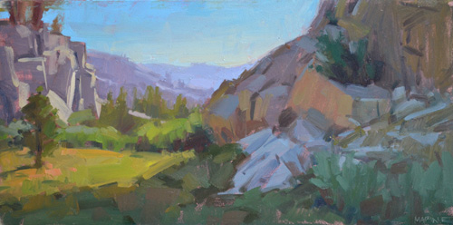 A few more details about the trip: we had our camping gear packed in on mules. Along with enough food for the week. And a cook to prepare it all. Yep, it was pretty cush! All we had to carry was our painting gear. We hiked 9 miles in, and 9 miles out. Our main view was Mt. Ritter, which you can see in the picture. And our camp was very near Garnet Lake.