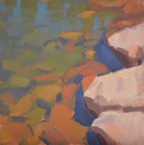 I did a few little water/rock studies that I'd like to show here together. The bottom two were from the pond I mentioned yesterday, and the top one was from a small lake about a 40 minute hike from camp. The colors were amazing! I did a few more from this spot that I'll post soon.