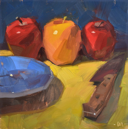 Here's another little apple scene. One of the reasons I end up painting so many apples is because they stay paintable for so long! It's hard for me to go out and buy more still life subjects when I have bowls of perfectly good apples at home.