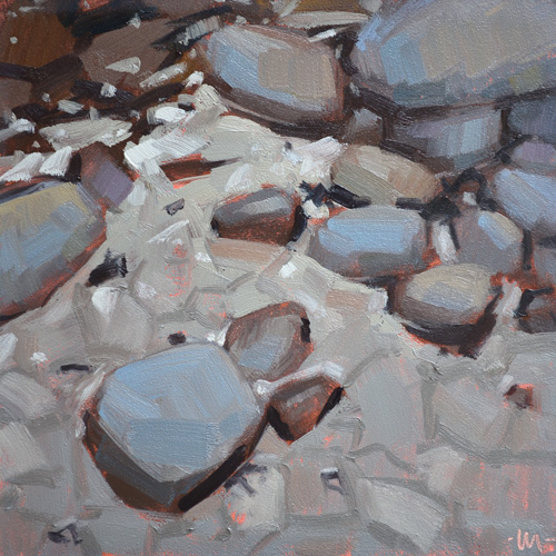 I don't remember where I took the photo reference for this one, though I'm pretty sure it was somewhere in California. The sun had gone down, so everything was in shadow. I love the challenge of trying to convey the rocks under the water. It's hard. Try it.