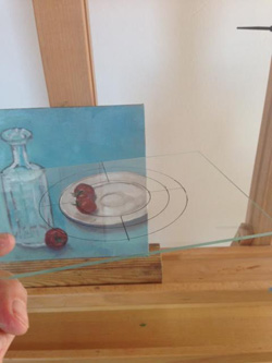 I also have a fabulous tip for you! Sigrid Junold Käppeler sent it to me after struggling with painting an ellipse. In order to see where her mistake was, she painted concentric circles on a piece of glass/plexi and held it up (tilted) in front of her painting. It sounds confusing, but a picture's worth a thousand words.