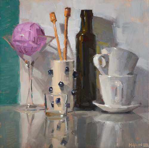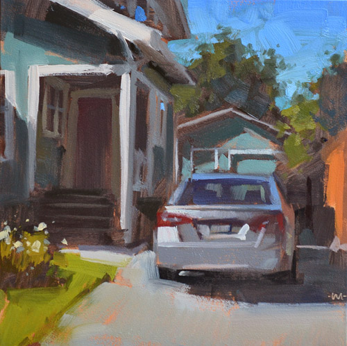 This is a scene from Seattle that I've been wanting to paint for a while. These two guys were just perfect - perfect poses, light, background, etc. I had to make only very minor adjustments. It's been especially nice to paint sunny scenes when the snow is falling here. It's been quite cozy in my studio.