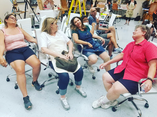 And here are a few of them at the end of the day, exhausted. They were hamming it up a tiny bit, but really, that's how I found them. I guess my workshops are a bit like art boot camp, so what do I expect?!