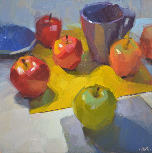 I just wrapped up my last Eugene workshop for the year (btw I used the leftover apples for this painting above). My kids were so great I'm a little suspicious they were plants of some kind. I'm still not sure what the purpose was, but no one group can really be this nice and this hardworking. Here are a few photos of kids and their work.