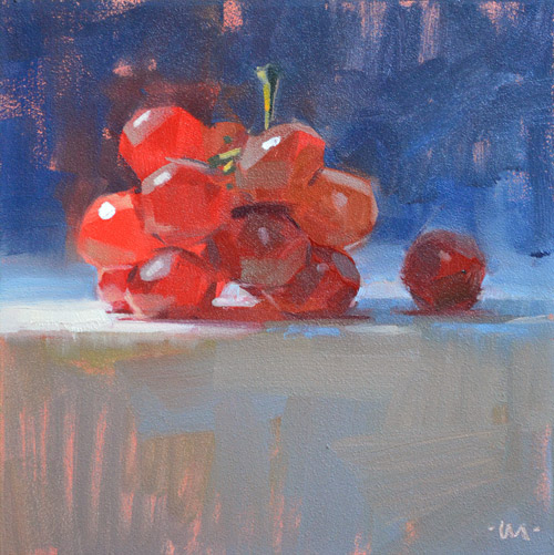 I was walking through Costco the other day when these red grapes caught my eye. I suddenly pictured a whole series of grape paintings in my head, so I bought them. Unfortunately I now have enough grapes for 100 paintings!