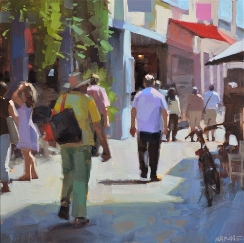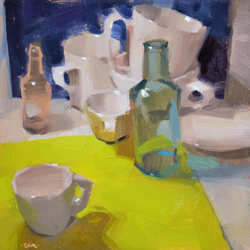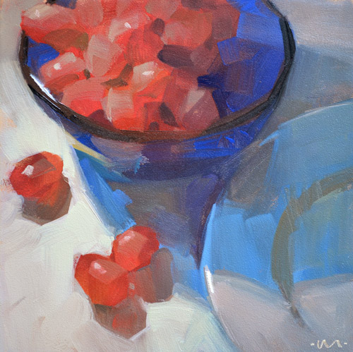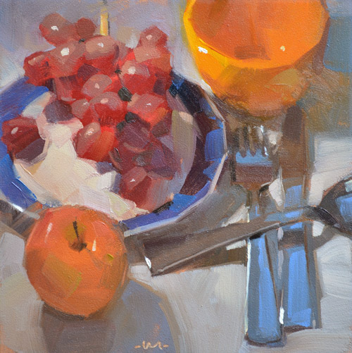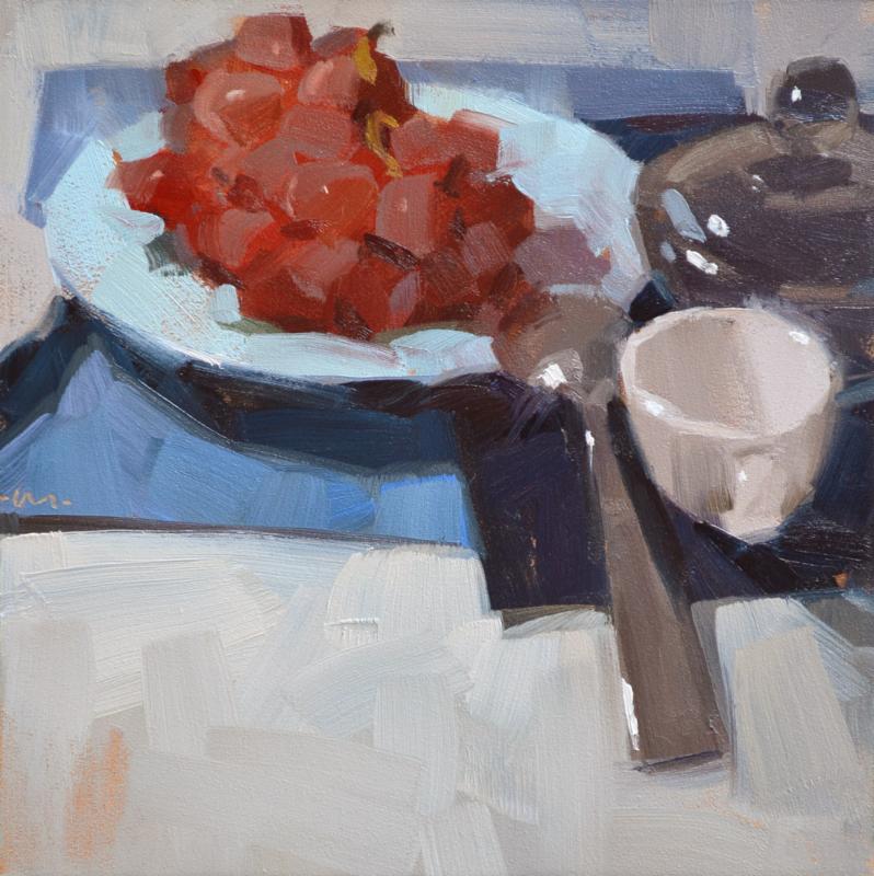 I painted this twice because I got interrupted in the middle of the first one. Does this happen to you? You are in the zone, painting away, when you get a phone call or some other interruption, and by the time you get back to the easel, you have just simply lost your momentum?! You can't remember what the next move was or where you were going with it? Maybe I'm just a delicate flower, but I have a tough time with it. This time though I really liked the composition, so I decided to start over from the beginning. Fortunately I think the second try was even better.