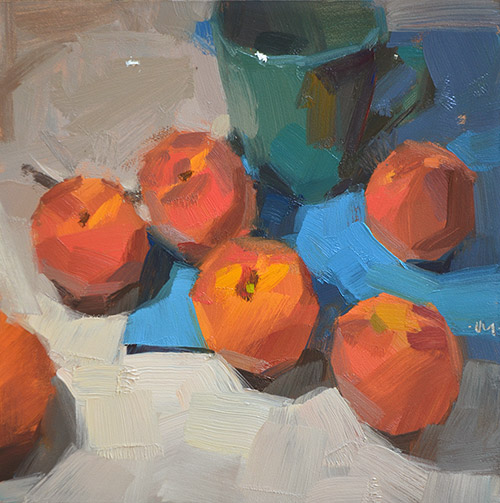 The thing I have learned about painting peaches, is that you have to add white to pretty much every color in them. Often it's just a tiny bit. But they don't look like peaches otherwise.