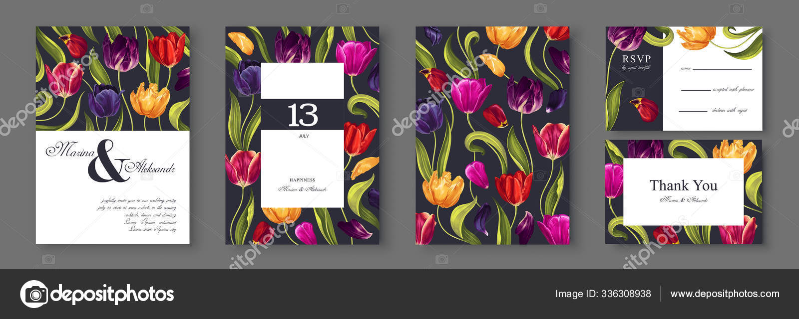 Wedding Invitation Card Template Design With Multi Colored Tulips Flowers Stock Vector C Mpetrovskaya 336308938
